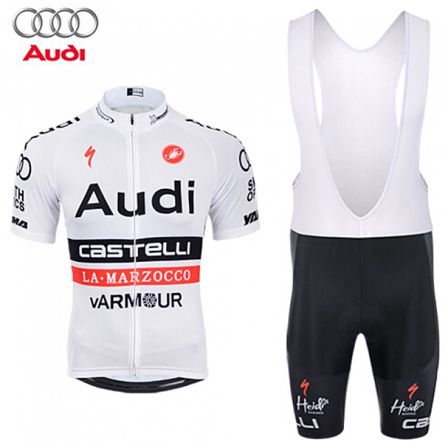 2015 AUDI Castelli Fietskleding Set Fietsshirt Korte Mouwen+Fietsbroek Bib Korte wit 2312