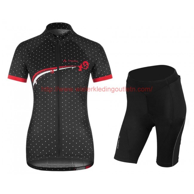 2017 Vaude Flower Dot Zwart-Wit Wielerkleding Wielershirt Korte Mouw+Korte Fietsbroeken 20176969
