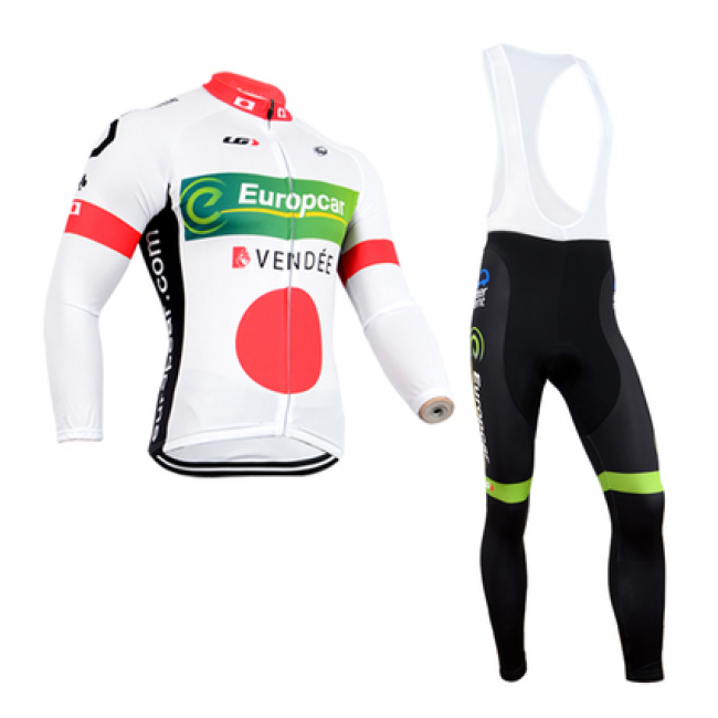 Europcar 2014 Fietskleding Fietsshirt Lange Mouwen+lange fietsbroeken Bib Zwart Wit Rood Groen 1222
