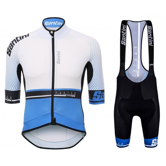 Santini Profteams 2017 Photon 30 wit-blauw FIetskleding Set Wielershirt Korte Mouw+Korte Fietsbroeken Bib 615AYMHA 2017082336